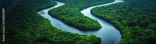 Fototapeta premium Aerial Perspective of a Winding River Cutting Through a Lush, Green Forest Canopy