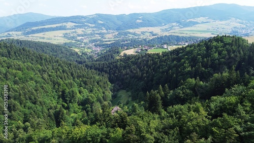 © AlexGo, Fototapeta premium Aerial perspective of forested area