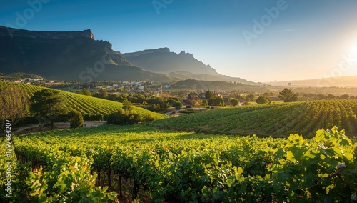 © AkuAku, Obraz premium Aerial perspective of vineyards in mountainous terrain, ideal for landscape photography