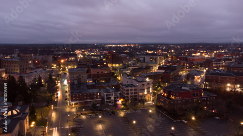 © Felix Mizioznikov, Fototapeta premium Aerial photo Bangor Maine at night twilight colors
