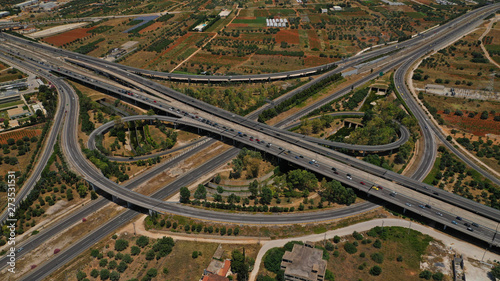 Naklejka premium Aerial photo of multilevel junction highway crossing with high speed national...