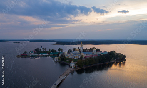 Fototapeta premium Aerial photo of St. Nilo Stolobensky monastery on Seliger Lake.