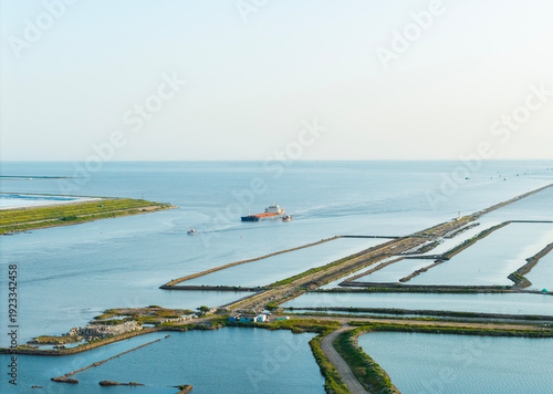 © 大 李, Obraz premium Aerial photo of the cargo ship setting sail