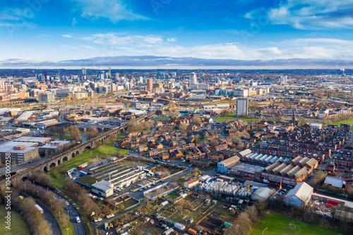 Obraz premium Aerial photo of the town of Hunslet in Leeds West Yorkshire in the UK,...