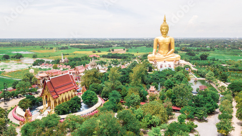 Naklejka premium Aerial Photo Wat Muang Ang Thong Thailand