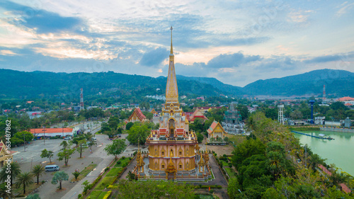 © Narong Niemhom, Fototapeta premium aerial photography above Chalong temple.
