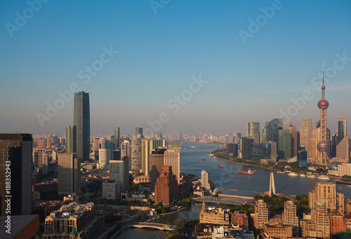 © Aania, Fototapeta premium Aerial photography bird view at Shanghai bund Skyline