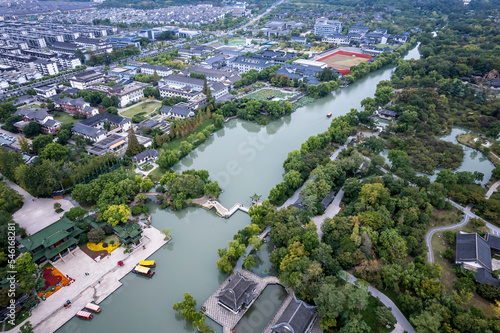 © zhouyilu, Fototapeta premium Aerial photography of Chinese garden landscape of Slender West Lake in Yangzhou