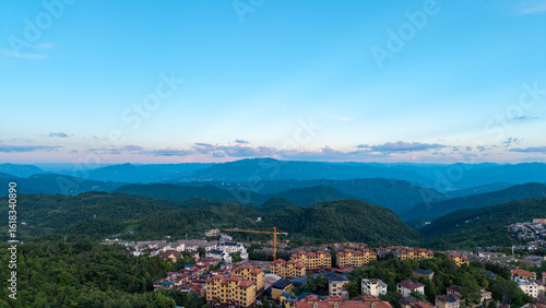 Fototapeta premium Aerial photography of summer houses in Xiannv Mountain town, Wulong District,...