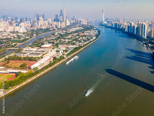 © zhouyilu, Fototapeta premium Aerial photography of urban architectural landscape along the Pearl River in Guangzhou