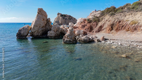 Fototapeta premium Aerial pictures made with a dji mini 4 pro drone over Aphrodite’s Rock, in Cyprus.
