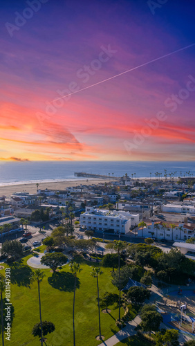 © Marcus Jones, Fototapeta premium Aerial shot along the coastline at the Newport Beach Pier in Newport Beach California USA