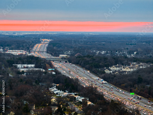 © vin, Obraz premium Aerial shot of a busy highway during sunset
