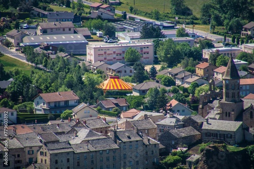 © Wirestock, Fototapeta premium Aerial shot of Saint-Julien-Chapteuil in Haute-Loire, France on a sunny day