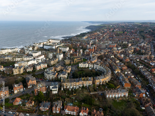 © JonMilnes, Fototapeta premium Aerial shot of Scarborough, South Bay North Yorkshire