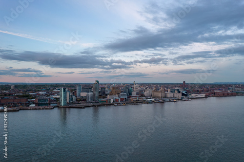 © Paul, Naklejka premium Aerial shot of the Liverpool skyline featuring the Three Graces