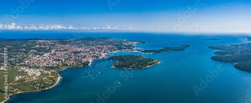 © Repcro Real Estate Photography And Video/Wirestock Creators, Obraz premium Aerial shot of the ocean in Medulin, Croatia with small green island