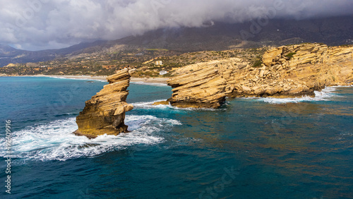 Fototapeta premium aerial shot of the scenic coastline of the Triopetra beach in Crete, Greece