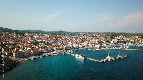 © Milos, Fototapeta premium Aerial shot of the Vodice beach near the town of Sibenik,Croatia. A famous tourist destination on the Adriatic sea