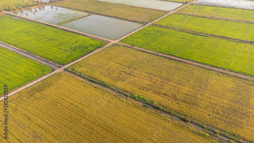 © chamnan phanthong, Obraz premium Aerial shot with drone in rice fields