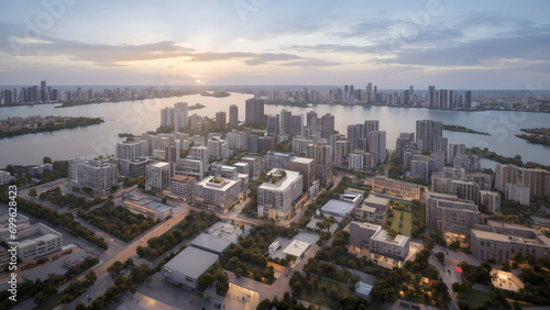 © Wang, Fototapeta premium Aerial shots of the city skyline, the skyscrapers of a modern city