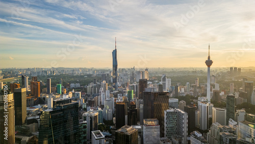 Obraz premium Aerial skyline at sunset cityscape of smart city in Kuala Lumpur, Malaysia on 11 October 2024