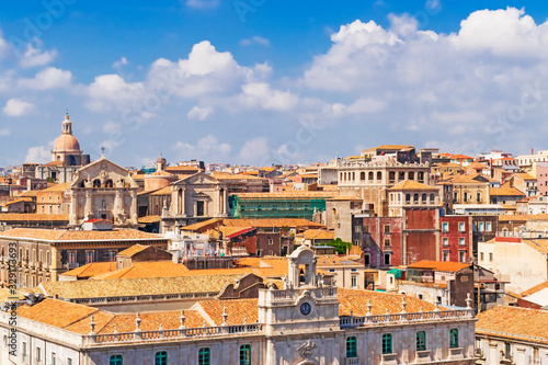 Obraz premium Aerial skyline panoramic view of Catania in September, old town featuring...