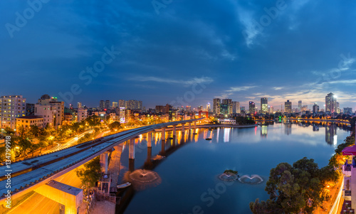 Fototapeta premium Aerial skyline view of Hanoi. Hanoi cityscape at twilight