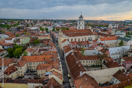 Obraz premium Aerial spring view of Pilies Street, Vilnius old town, Lithuania