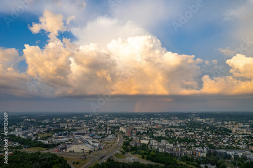 © Top Lithuania, Obraz premium Aerial summer storm rain view of Vilnius, Lithuania