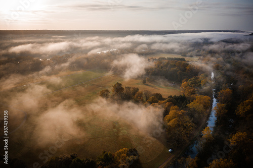 © Jin, Fototapeta premium Aerial Sunrise in Frenchtown New Jersey