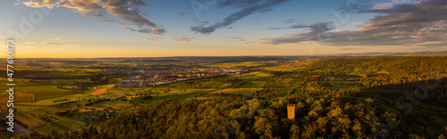 © Michael, Naklejka premium Aerial top view of a castle ruin in the forest