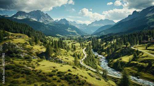 © Sasint, Fototapeta premium Aerial top view: of cars driving on zig zag winding mountain road