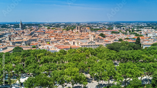© Iuliia Sokolovska, Naklejka premium Aerial top view of Montpellier city skyline from above, Southern France