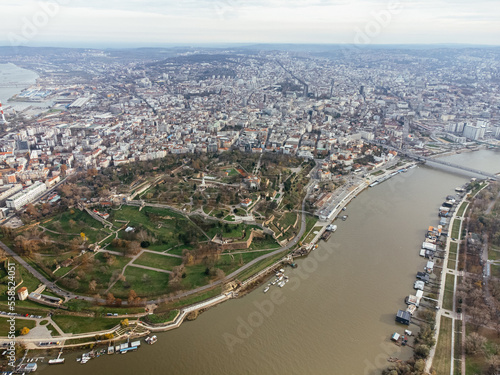 Fototapeta premium Aerial top view to Kalemegdan fortress at Belgrade. Summer photo from drone. Serbia