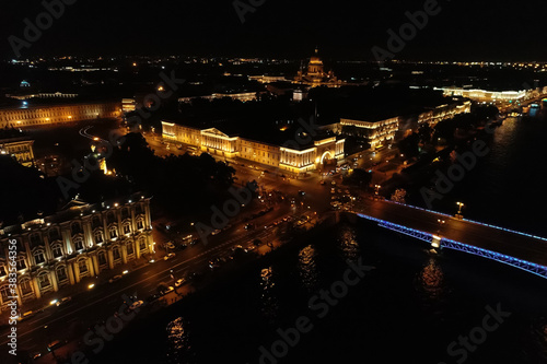 Fototapeta premium Aerial Townscape of Saint Petersburg City at Night. Central District