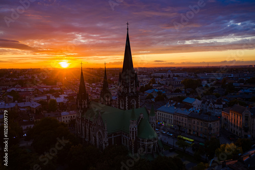 © Ruslan, Fototapeta premium Aerial veiw on Elizabeth church in Lviv, Ukraine from drone.