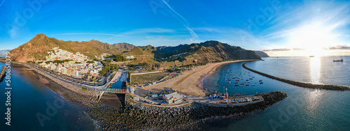Obraz premium Aerial view above rainbow colored swimming beach - Playa de Las Teresitas - in San Andres Tenerife Canary Islands