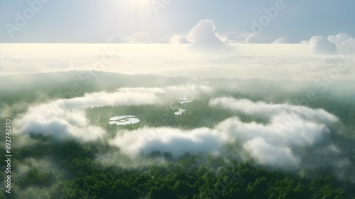 © bharath, Obraz premium Aerial view above the clouds with a hint of sunlight