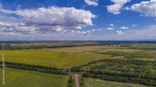 © Olonkho, Fototapeta premium aerial view agriculture field summer day. Summer day landscape.