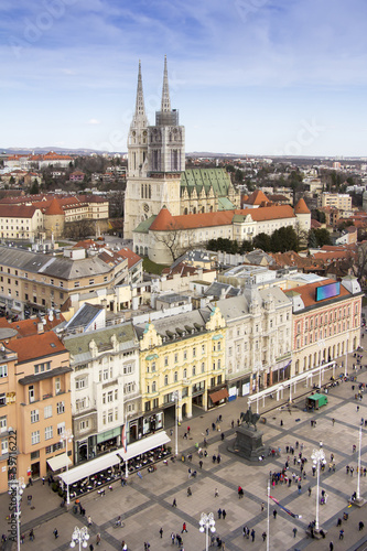 Fototapeta premium Aerial view at Ban Jelacic Square in Zagreb capital town of Croatia