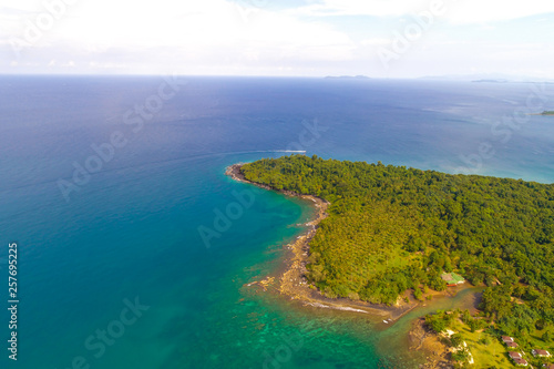 Fototapeta premium Aerial view beautiful green tree on island with turquoise sea water