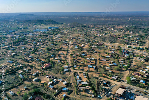 Obraz premium aerial view Botswana African village Serowe, infrastructure highway with...