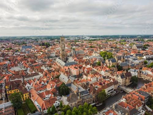 Obraz premium Aerial vIew by drone. Summer. Brugge, Belgium.