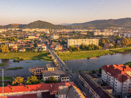 © Stanislav, Obraz premium Aerial vIew by drone. Summer. Mukachevo. Zakarpattia Ukraine