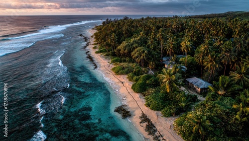 © Herman, Fototapeta premium Aerial view captures a beach with crashing waves, coastline, and lush green tropical forest