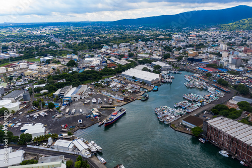 © David Brown, Fototapeta premium Aerial view, city view of Port Louis with harbor, old town and financial district, Mauritius