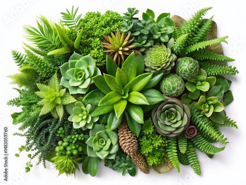 © prapatsorn, Fototapeta premium Aerial View Diverse Green Plants: Cutout PNG Textures for Design