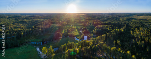 © nikwaller, Fototapeta premium Aerial View. Flying over the beautiful summer rivers at sunset.