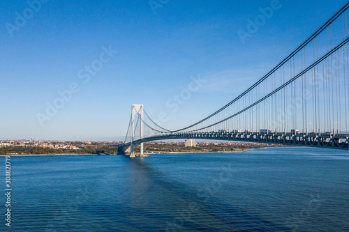 Naklejka premium Aerial view footage of the Verrazano Bridge NY
